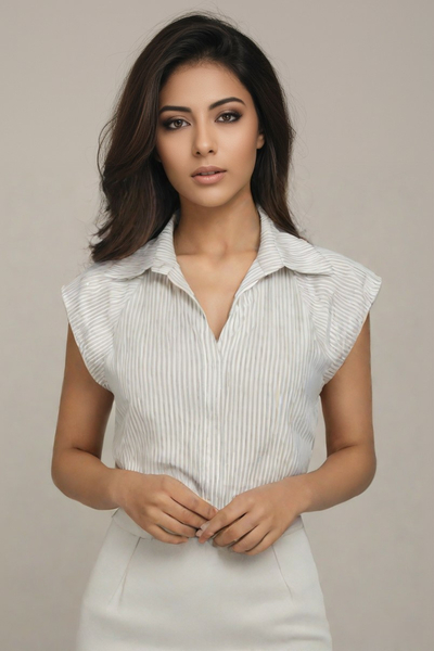 Πουκάμισο ριγέ, αμάνικο. Βάτες στους ώμους.