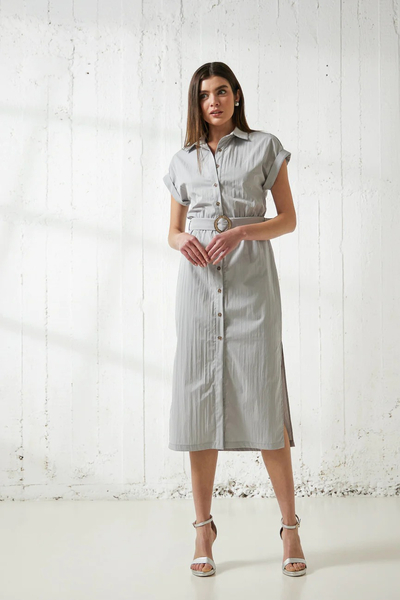 Φόρεμα μίντι με γιακά. Σταθερό ύφασμα.
