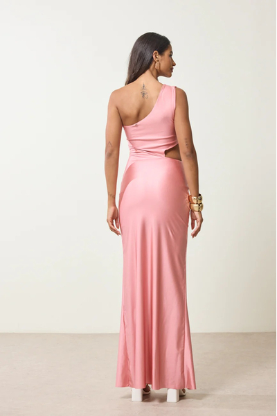Φόρεμα μάξι με έναν ώμο και cut out. Ελαστικό ύφασμα, μεταλιζέ.