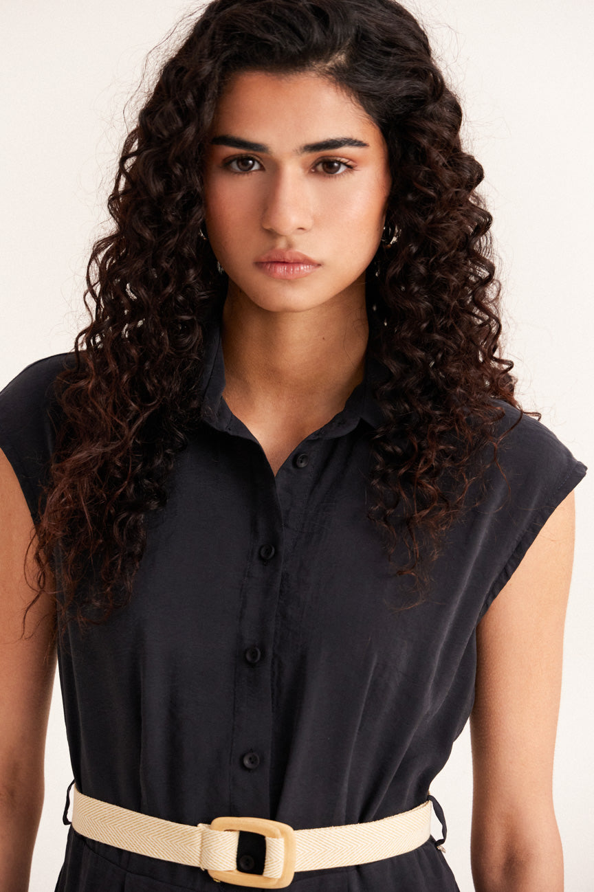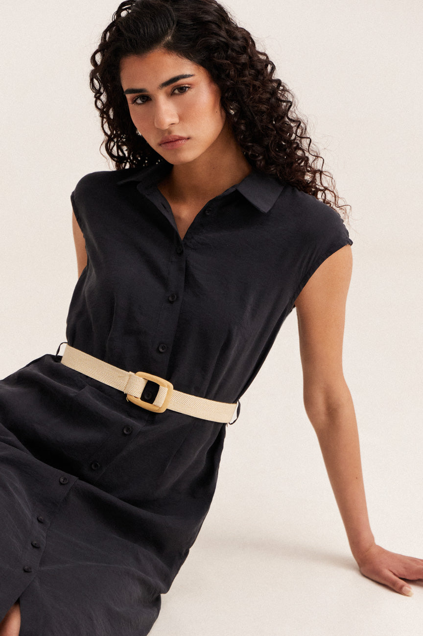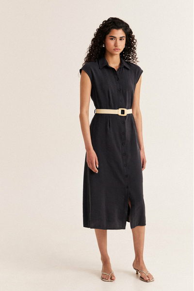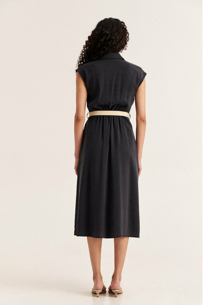 Φόρεμα midi με γιακά. Σταθερό ύφασμα.