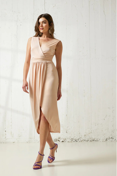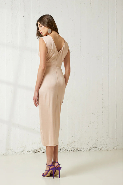 Φόρεμα μίντι αμάνικο. Ελαστικό ύφασμα, μεταλιζέ.