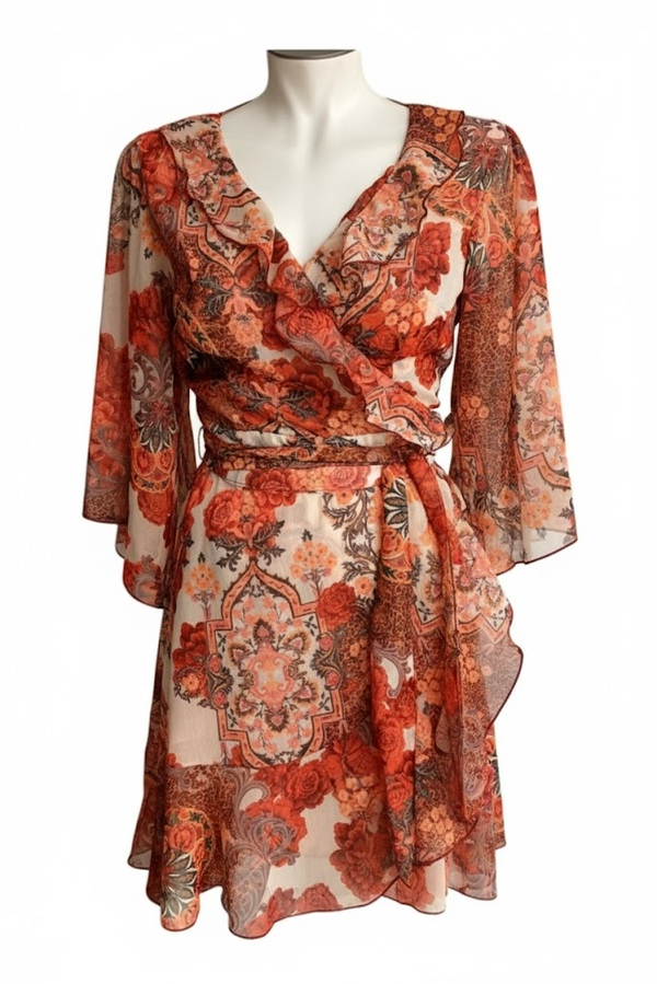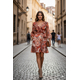 Φόρεμα μίνι μουσελίνα. Εμπριμέ σχέδιο.