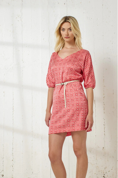 Φόρεμα μίνι εμπριμέ. Σταθερό ύφασμα με μικρή ελαστικότητα.