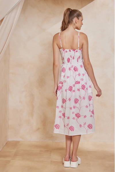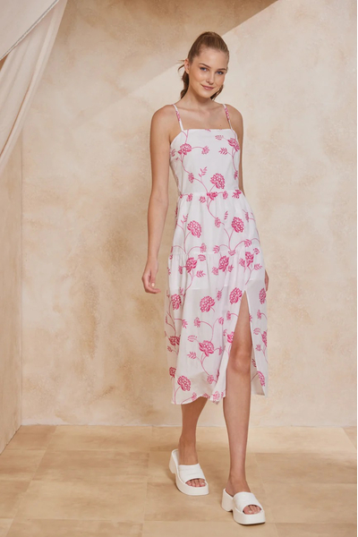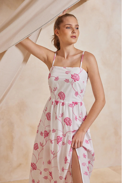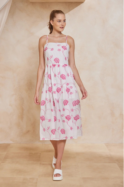 Φόρεμα μίντι εμπριμέ.Σταθερό βαμβακερό ύφασμα. Ίσια γραμμή με άνετη κίνηση.