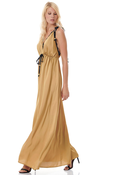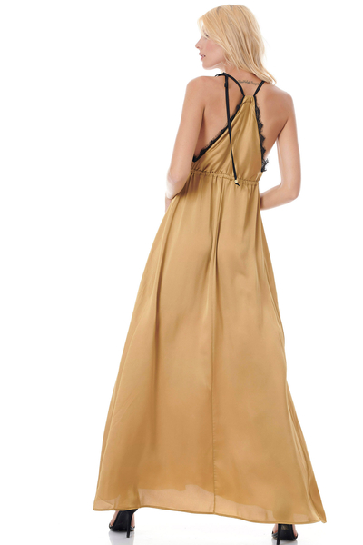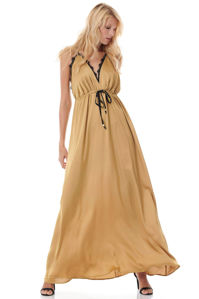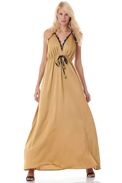 Μαχι φόρεμα σατέν με δαντέλα στο στήθος