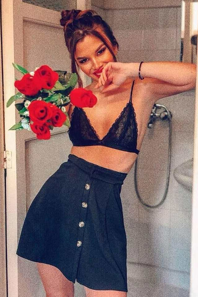 Ψηλόμεση σε Α γραμμή, κλείνει μπροστά με κουμπιά.