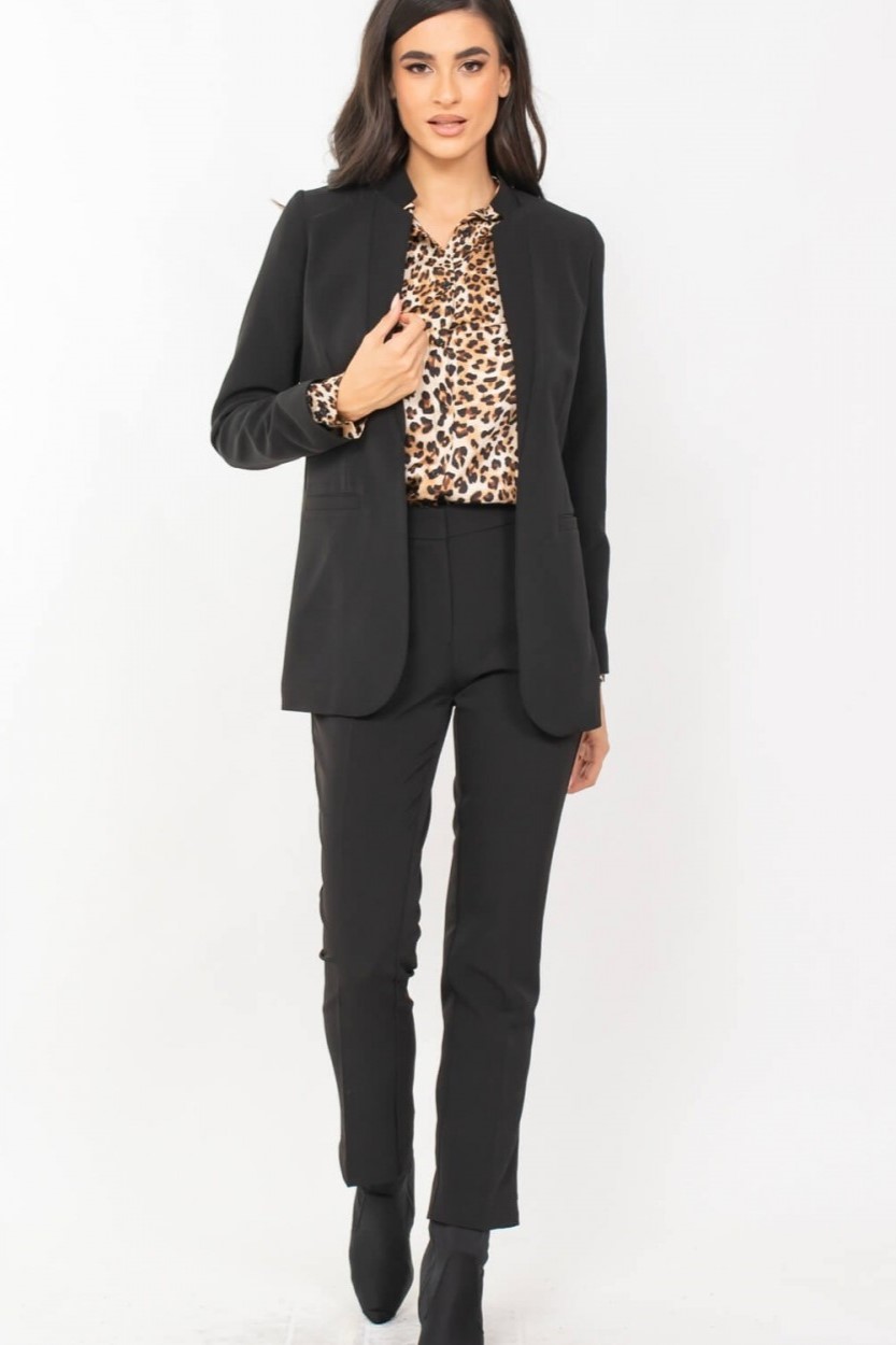Κουστούμι κρεπ. Σακάκι με μάο γιακά, χωρίς κουμπί.