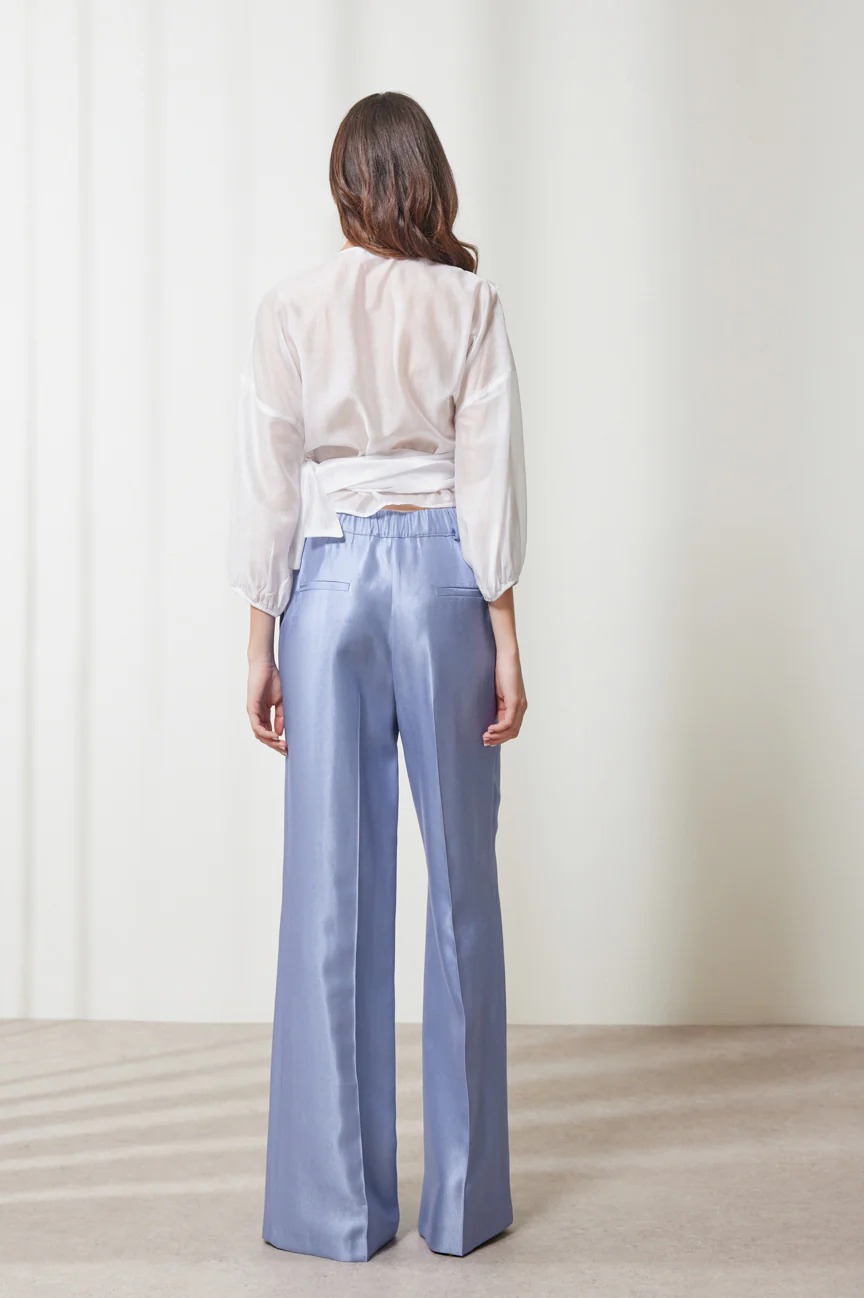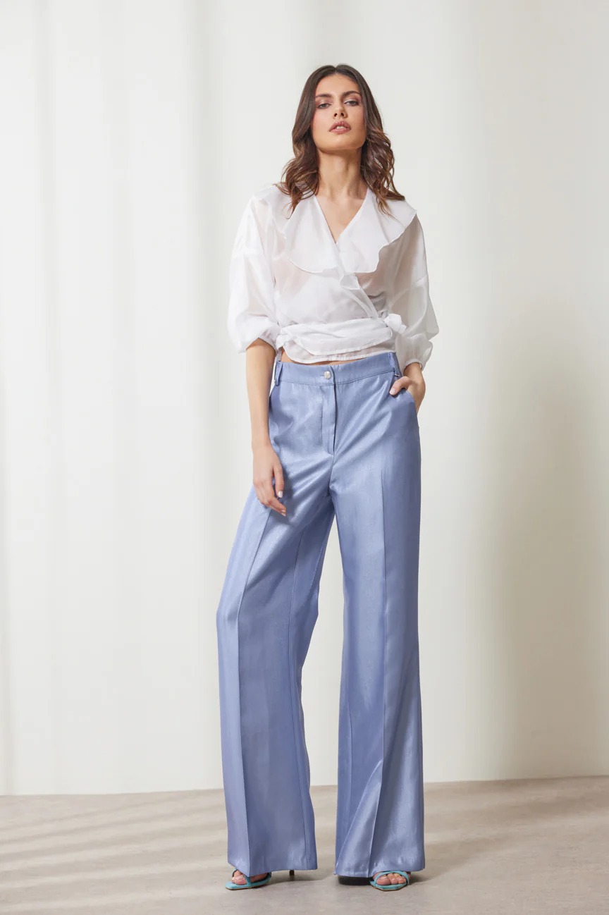 Παντελόνα ψηλόμεση. Σταθερό ύφασμα, μεταλιζέ.