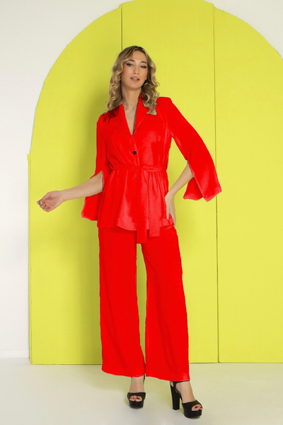 Σετ παντελόνα και σακάκι με άνοιγμα στα μανικία.