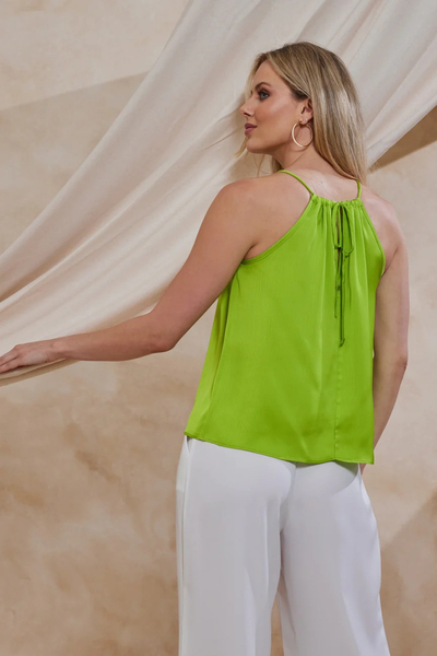 Μπλούζα αμάνικη. Σταθερό ύφασμα, γυαλιστερή όψη. Ίσια γραμμή με άνετη κίνηση.