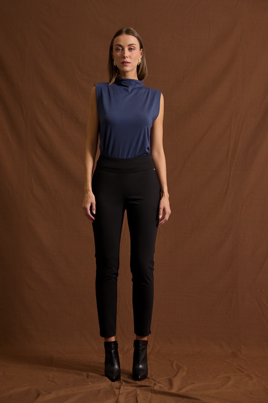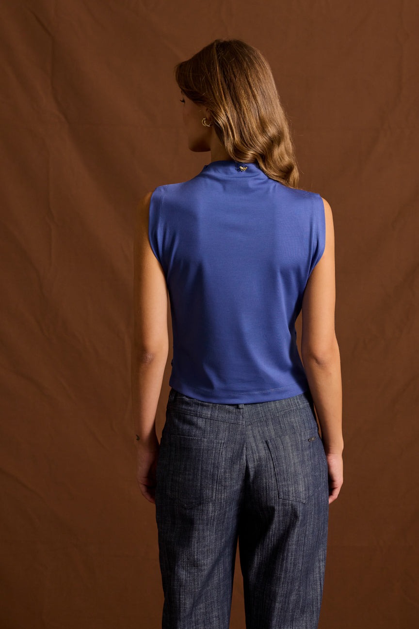 Μπλούζα αμάνικη. Ελαστικό ύφασμα. Εφαρμοστό με άνετη κίνηση. Ψηλή λαιμόκοψη.