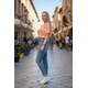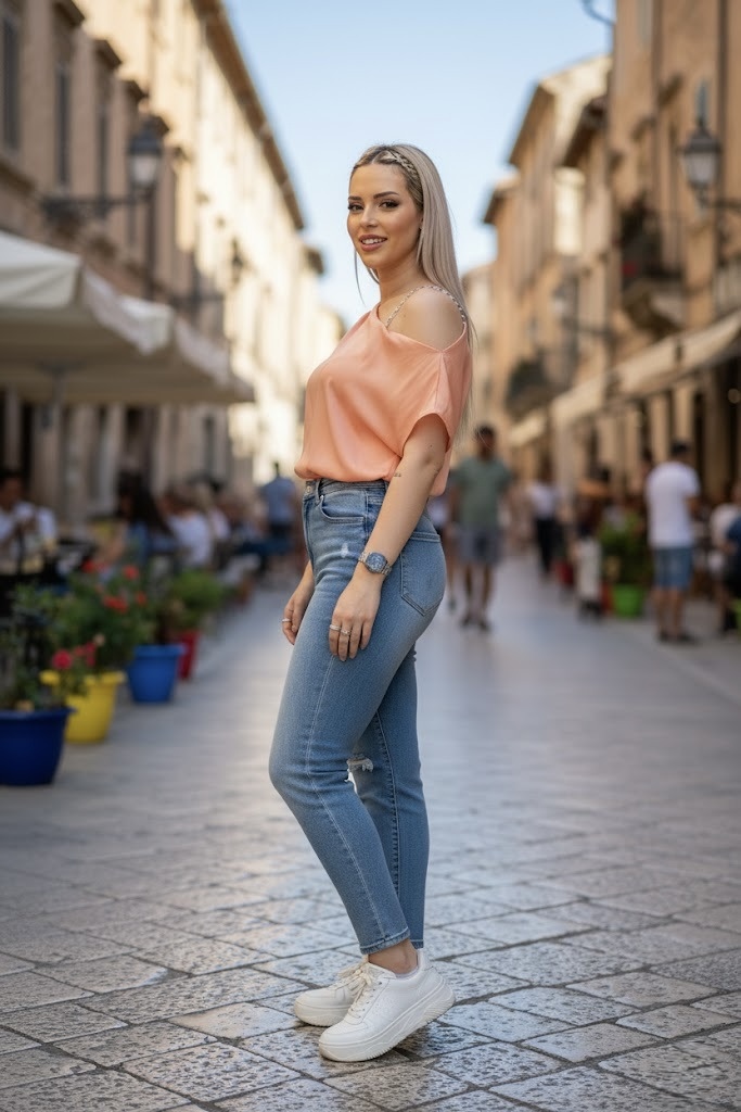 Σατέν μπλούζα με παντελόνα. Μπλούζα σε άνετη γραμμή.