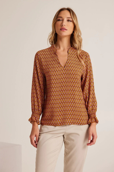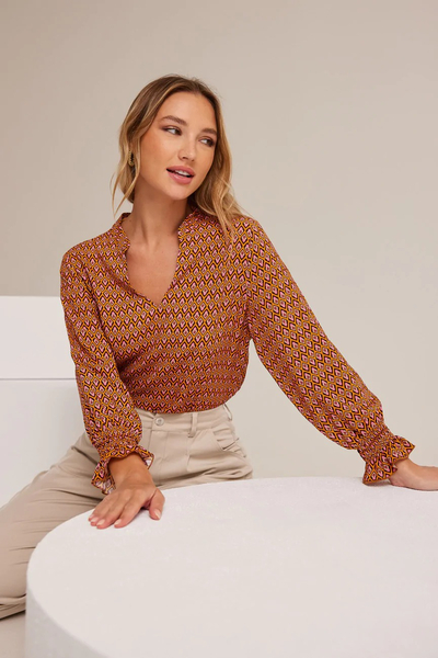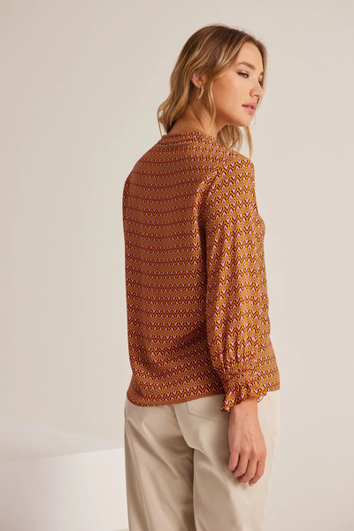 Μπλούζα εμπριμέ μακρυμάνικη. Σταθερό ύφασμα, βισκόζη.