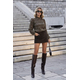 Μπλούζα σε λεπτό πλεκτό ύφασμα κοπής ραφής, ιδανική για τις ενδιάμεσες εποχές. Διαθέτει ένα εντυπωσιακό, γεωμετρικό μοτίβο σε αποχρώσεις του καφέ και του μπλε/γκρι, προσδίδοντας ένα ethnic ή ρετρό χαρακτήρα. Ο ψηλός λαιμός (ζιβάγκο/mock neck) και τα μανίκια με ελαφριά σούρα στους ώμους προσφέρουν ένα chic και κομψό τελείωμα. Άνετη εφαρμογή, τέλεια για να φορεθεί είτε μέσα από ένα παντελόνι είτε έξω. Συνδυάστε τη με δερμάτινες υφές και ψηλές μπότες για ένα ολοκληρωμένο, μοντέρνο look.