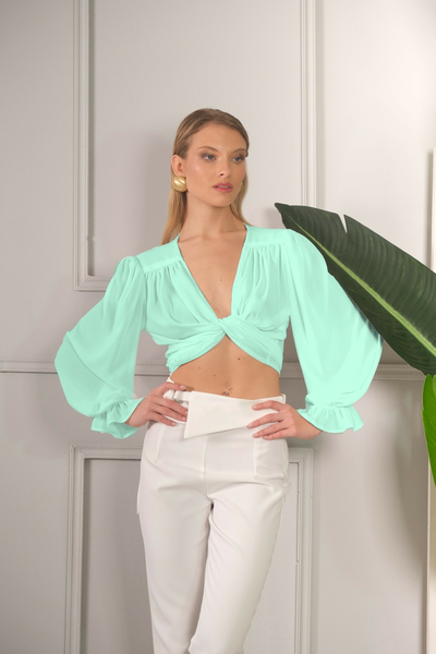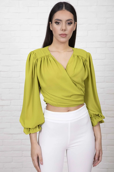Μπλούζα κρουαζέ με λάστιχο στα μανίκια