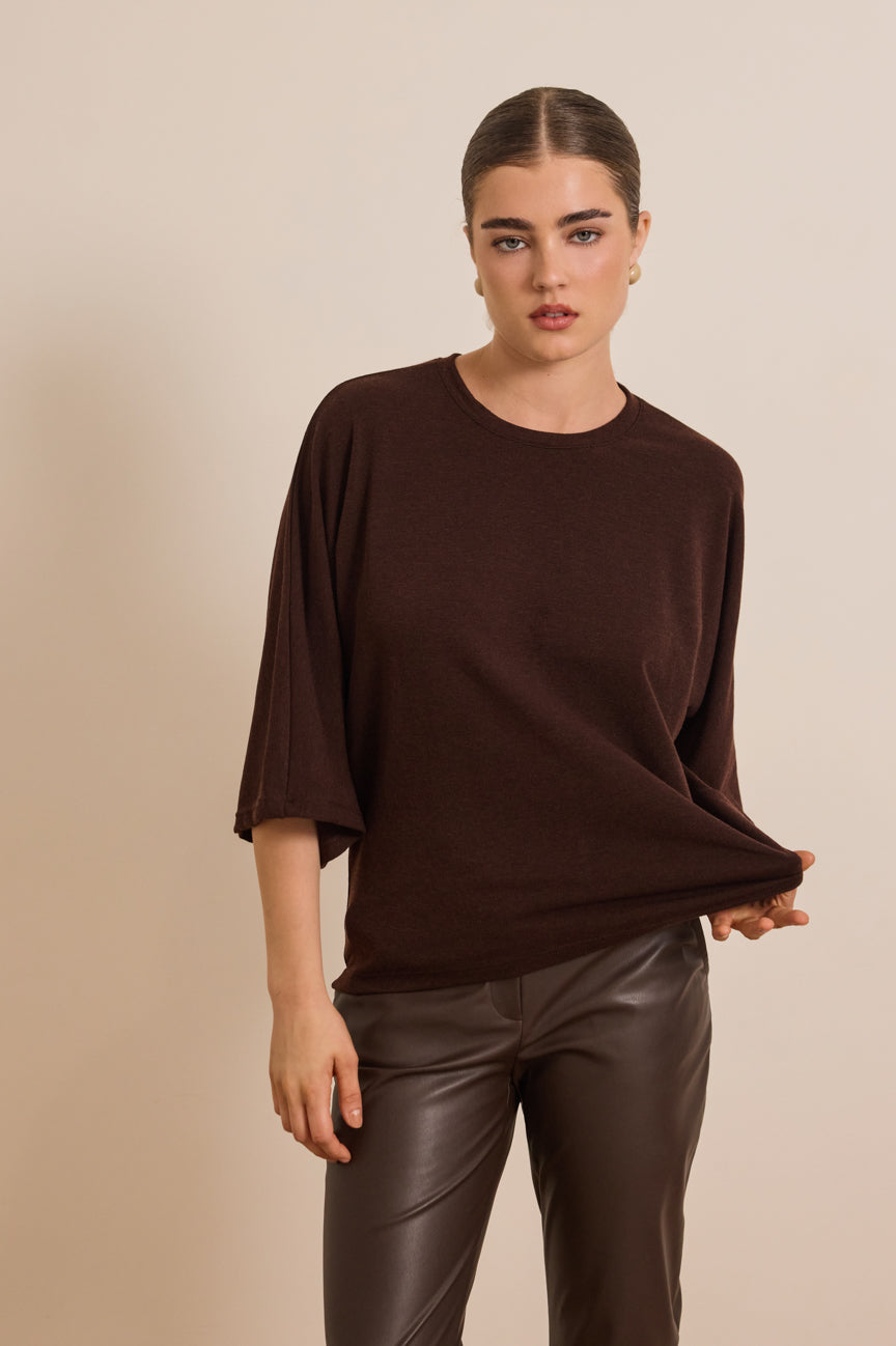 Φαρδύ μανίκι τριών τετάρτων, με άνετο άνοιγμα.