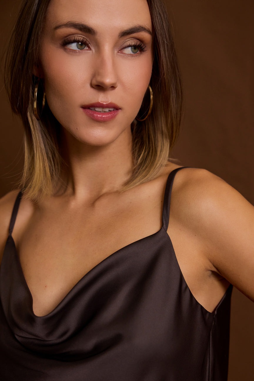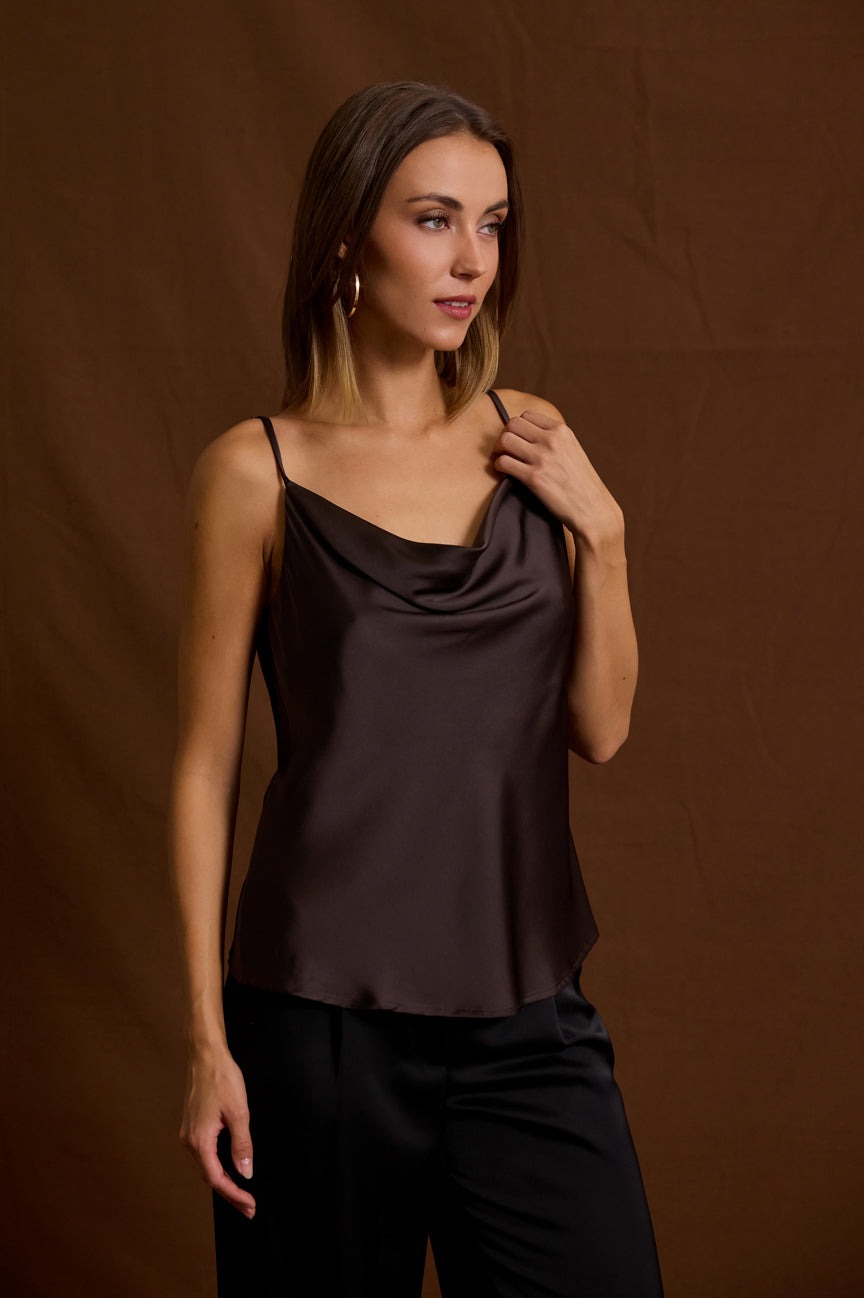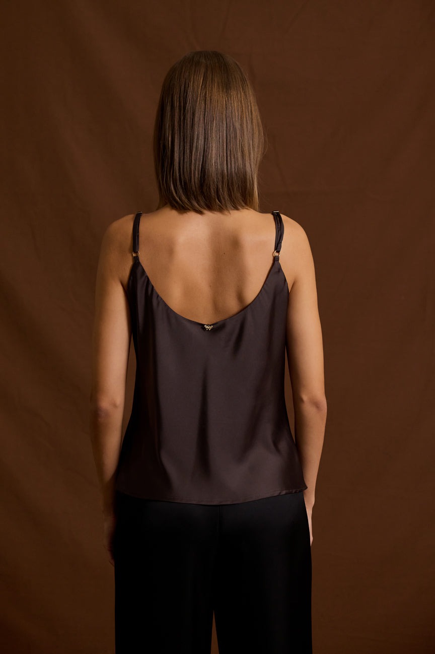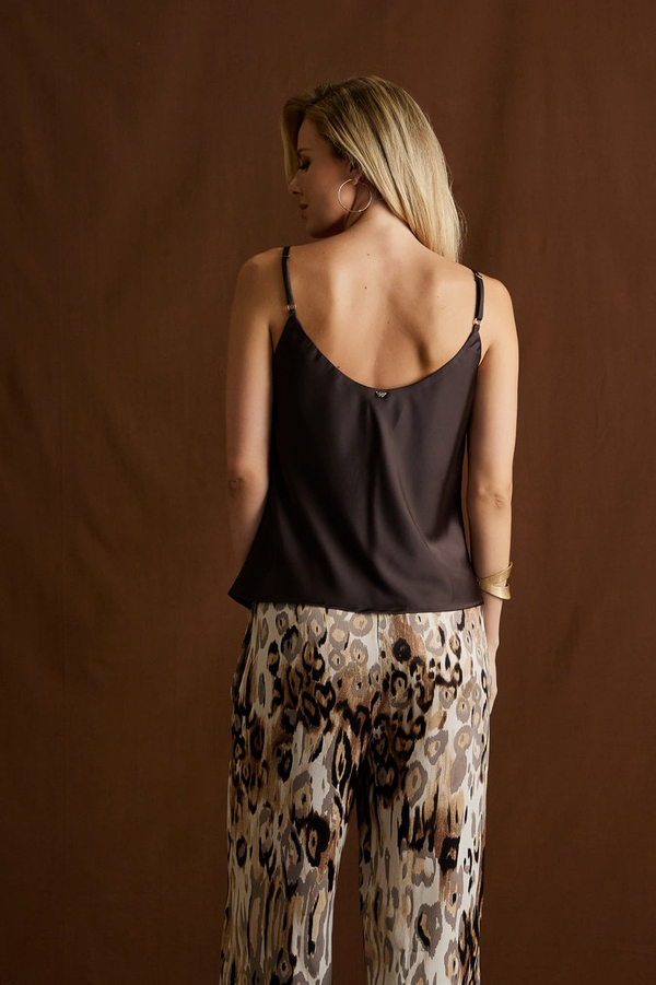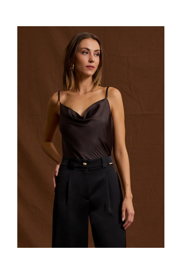 Μπλούζα αμάνικη. Σταθερό ύφασμα με σατέν όψη.