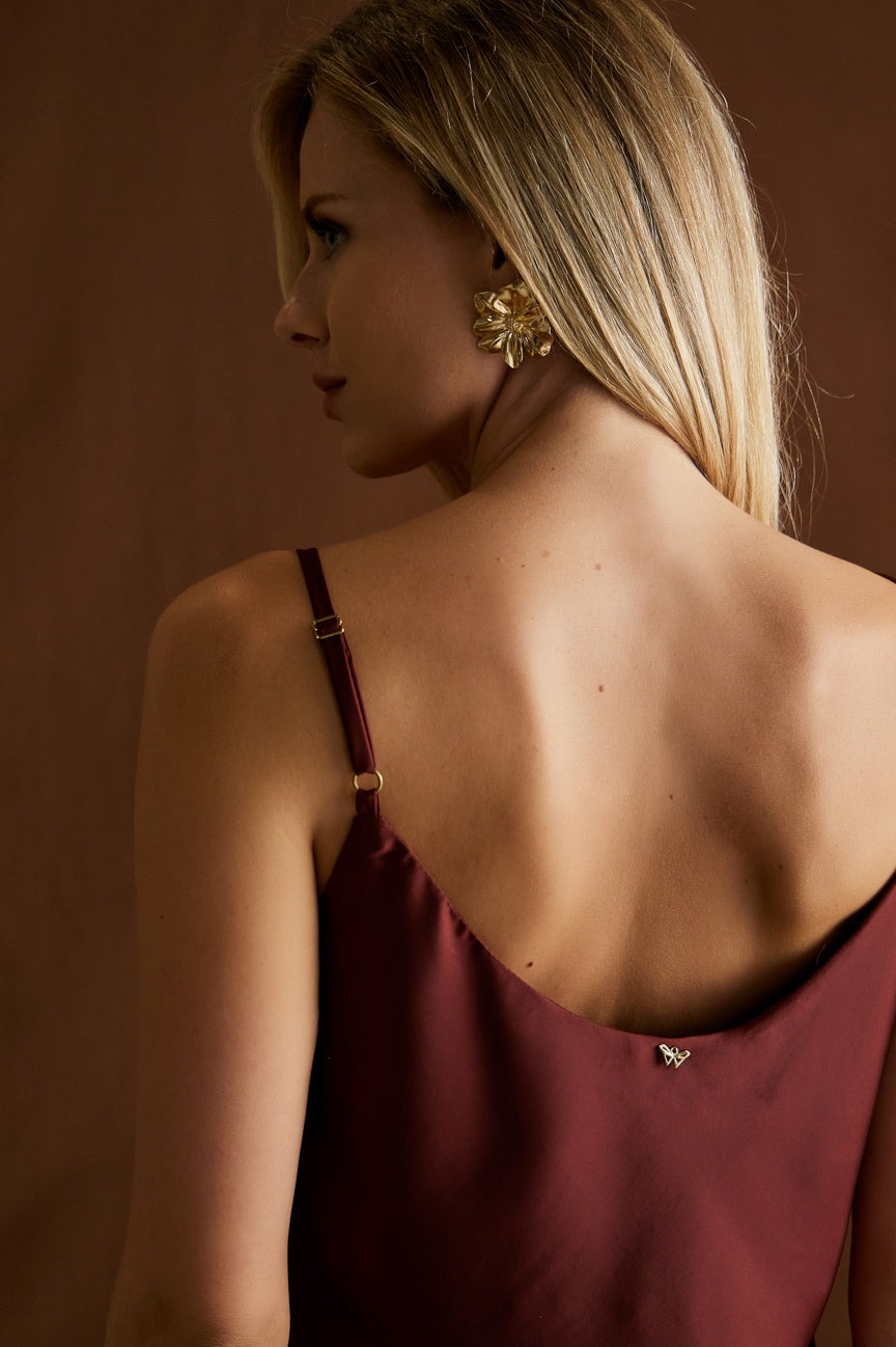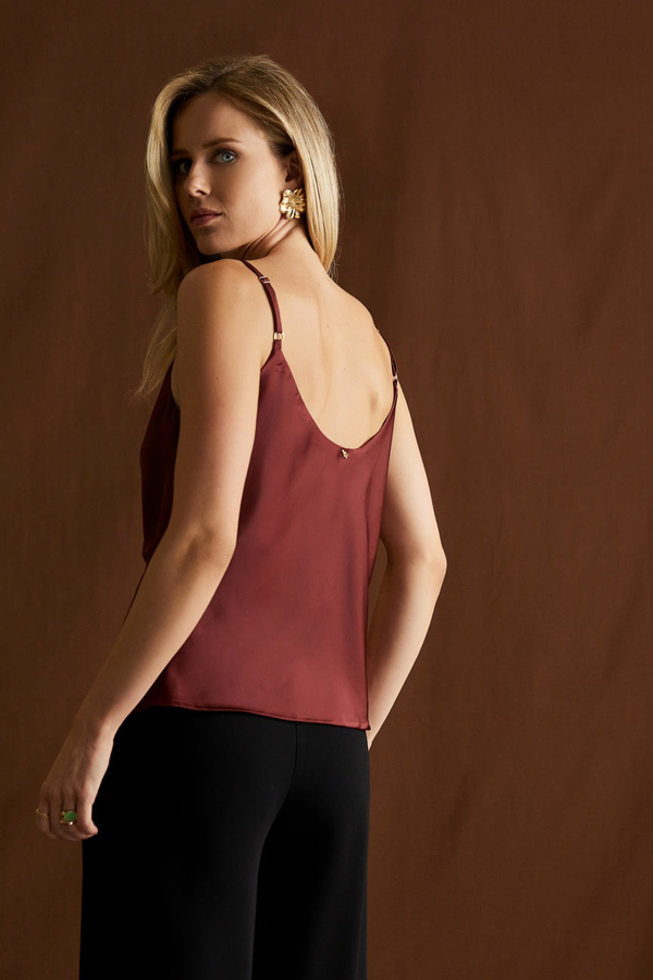 Μπλούζα αμάνικη. Σταθερό ύφασμα με σατέν όψη.