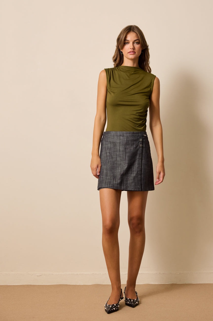 Εφαρμοστή με άνετη κίνηση. Σχέδιο με σούρες στο πλάι.