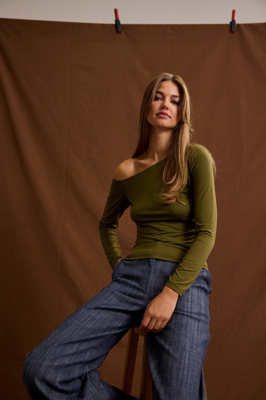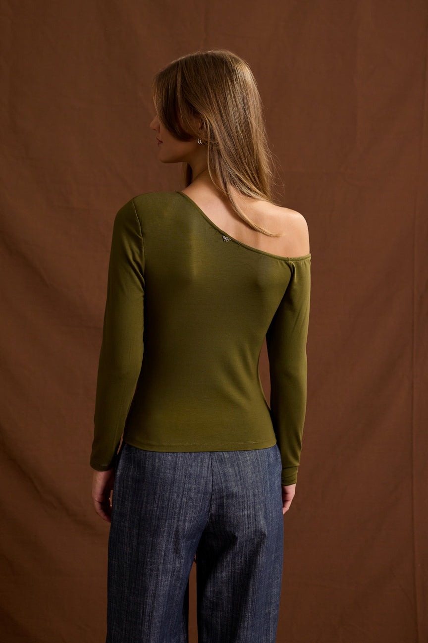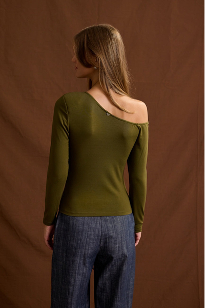 Μπλούζα μακρυμάνικη off shoulder. Ελαστικό ύφασμα, bamboo.