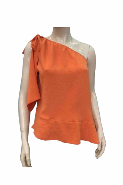 Μπλούζα με έναν ώμο και βολάν στο κάτω μέρος.