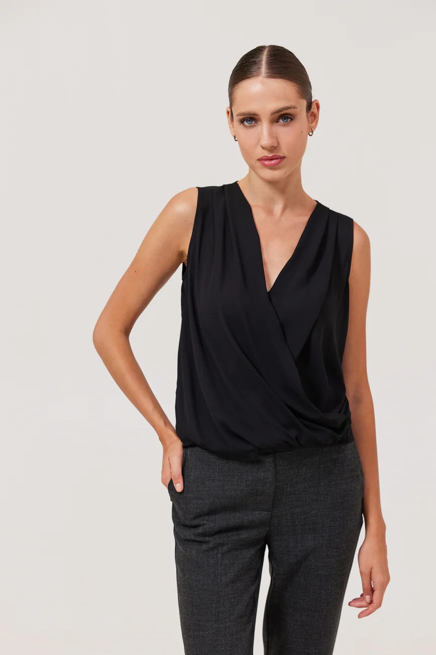 Μπλούζα αμάνικη, κρουαζέ. Άνετη εφαρμογή. Σταθερό ύφασμα, μουσελίνα.