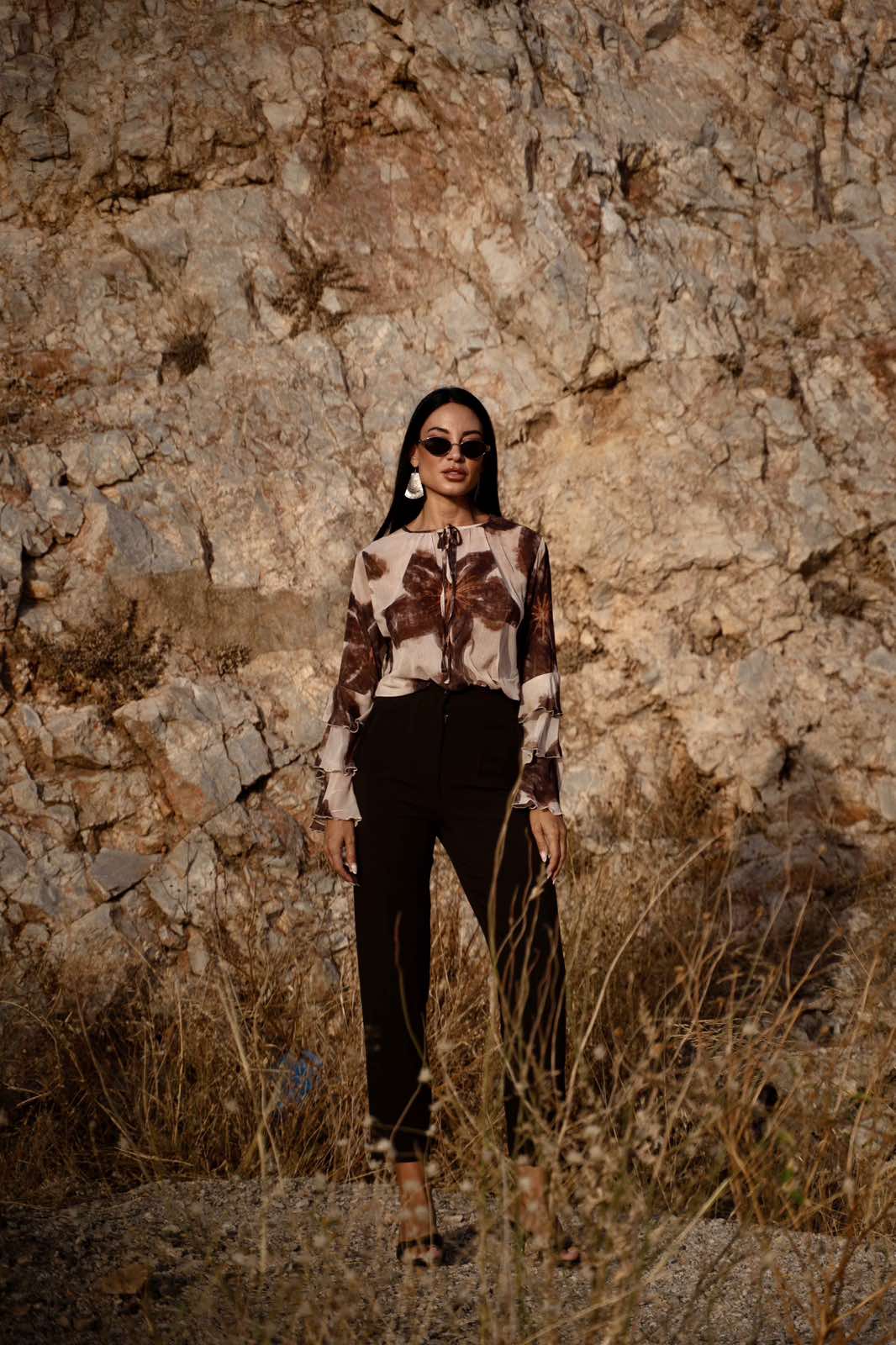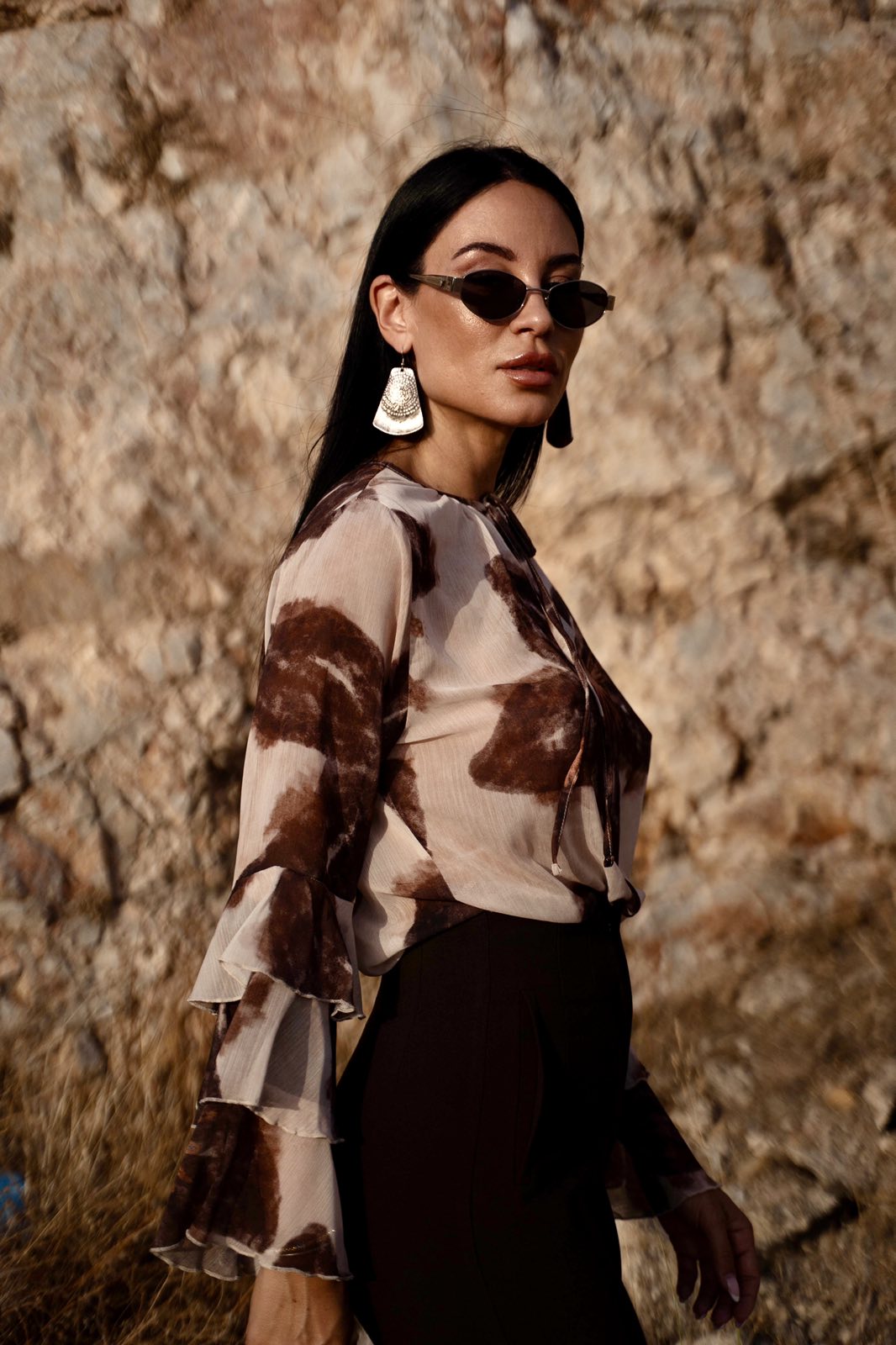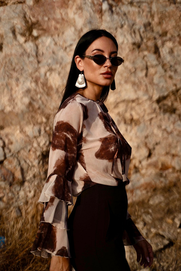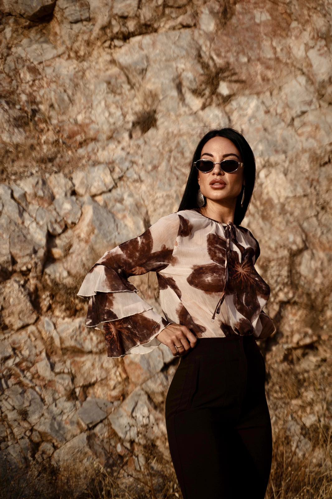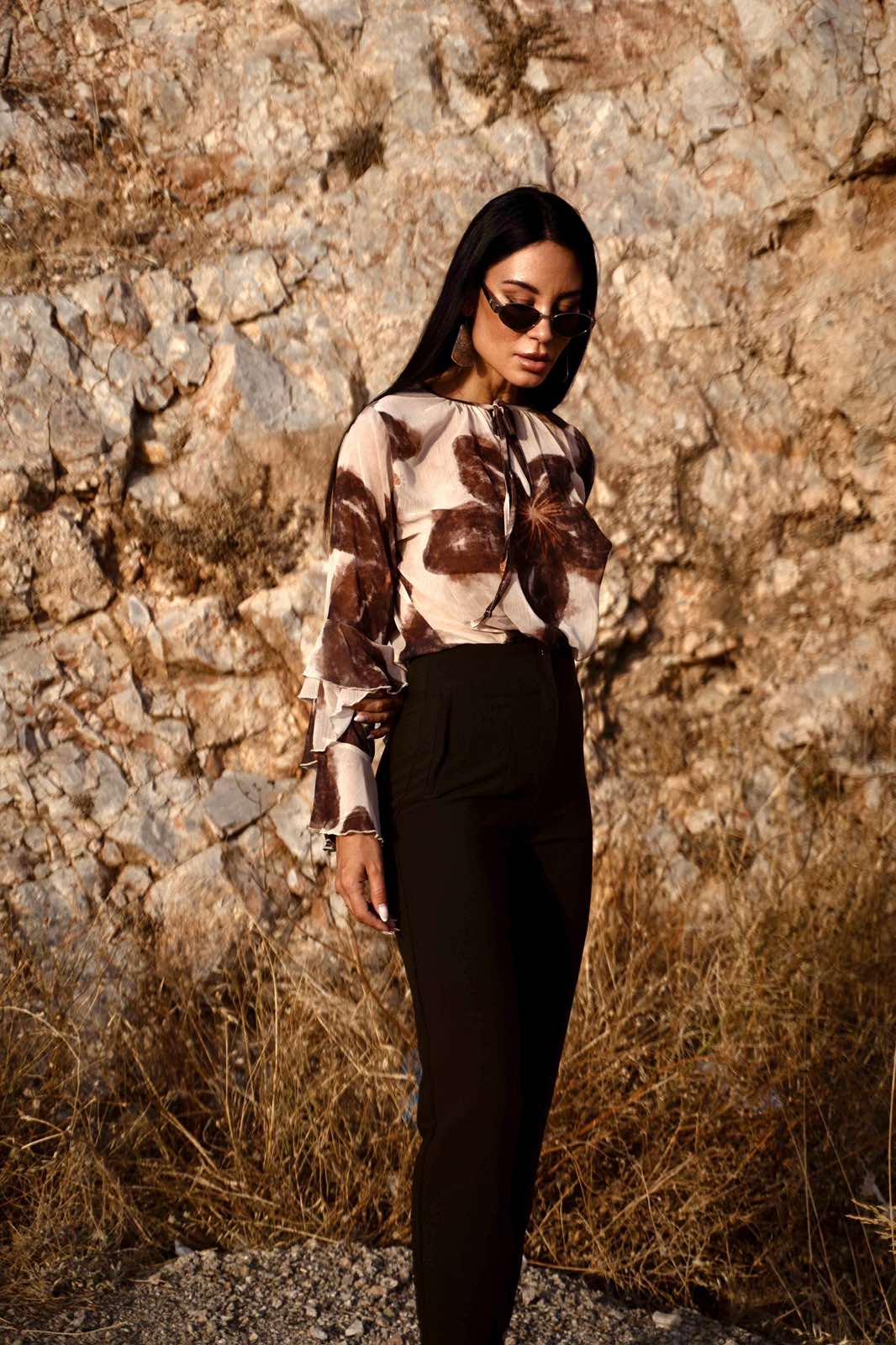 Βολάν στα μανίκια. Δέσιμο στο λαιμό.