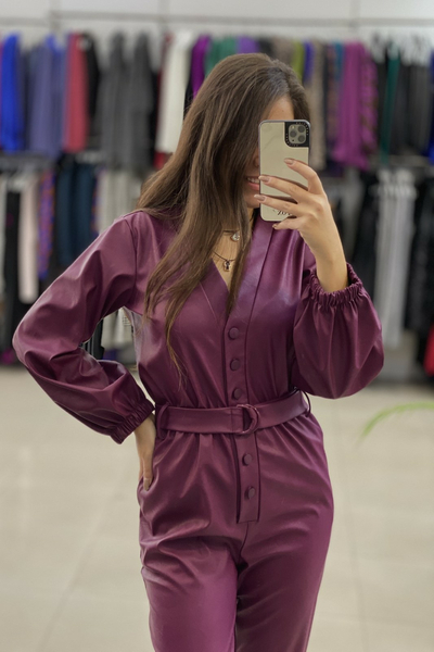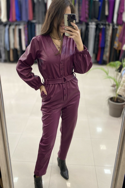 Ολόσωμη φόρμα δερματίνη με κουμπιά στο μπροστινό μέρος και ζώνη