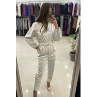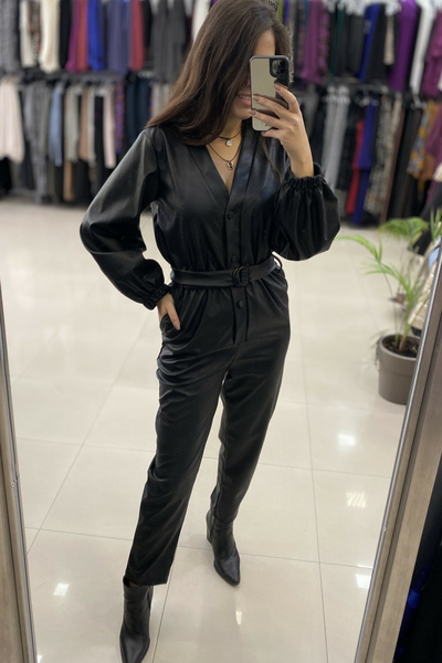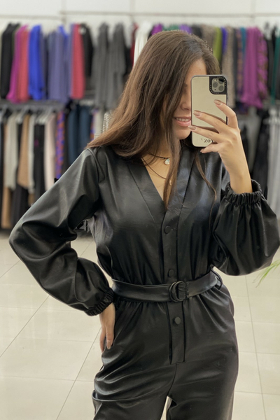 Ολόσωμη φόρμα δερματίνη με κουμπιά στο μπροστινό μέρος και ζώνη