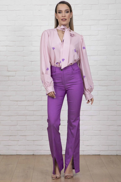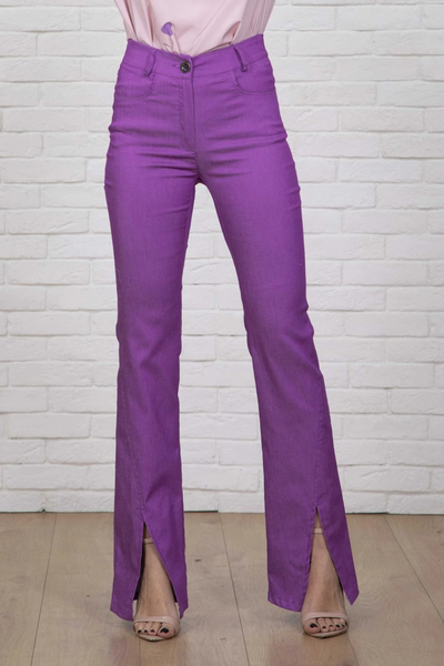 Παντελόνι καμπάνα σε όψη denim. Με άνοιγμα στο κάτω μέρος