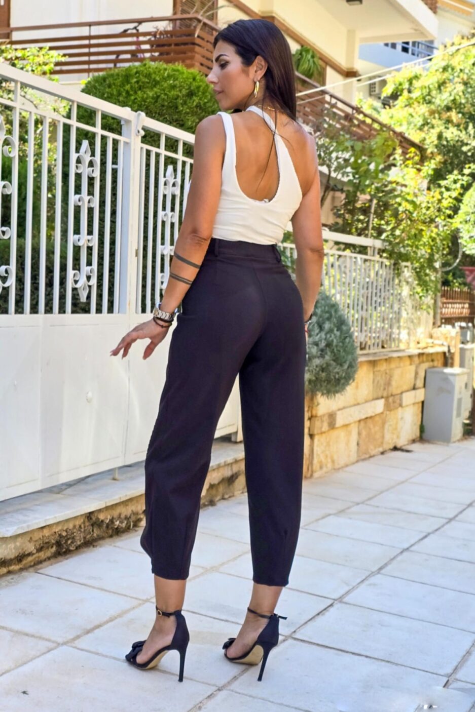 Παντελόνι φάκελος. Με φύλλο που επανωτίζει και τρία κουμπιά.