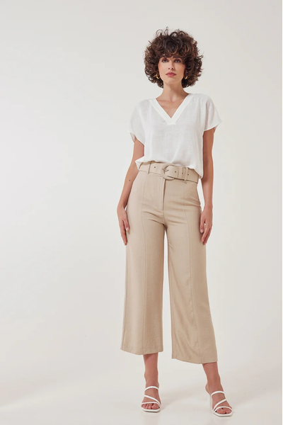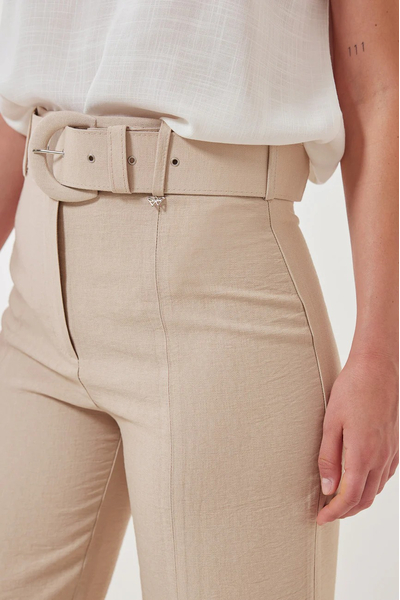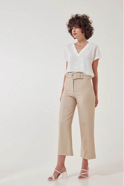 Παντελόνι με ζώνη. Σταθερό ύφασμα. Κανονική εφαρμογή, άνετη κίνηση.