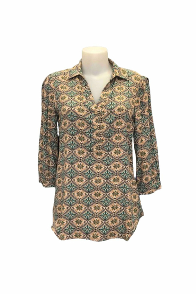 Πουκαμίσα εμπριμέ με δύο κουμπιά. Μανίκια 3/4.