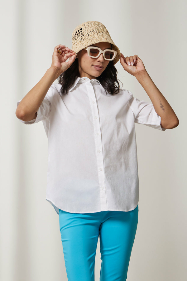 Πουκάμισο κοντομάνικο. Σταθερό βαμβακερό ύφασμα.
