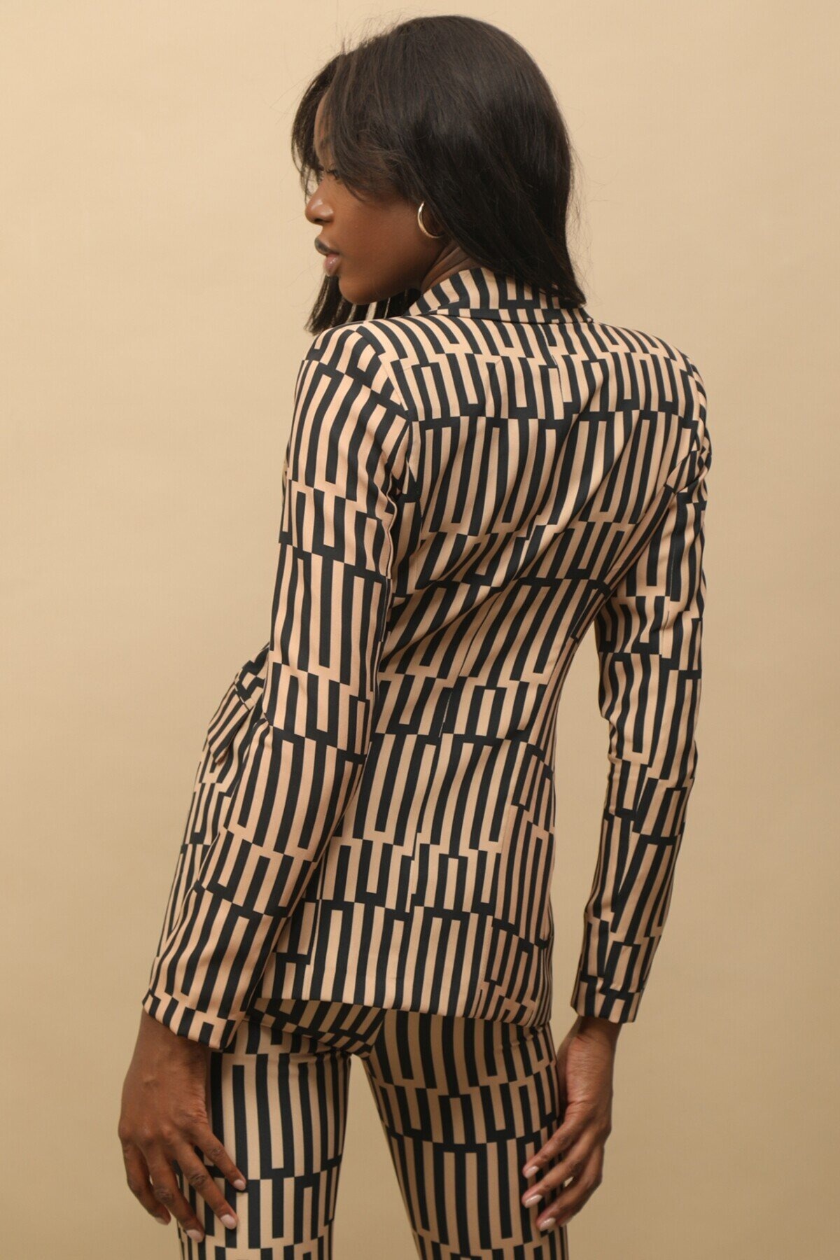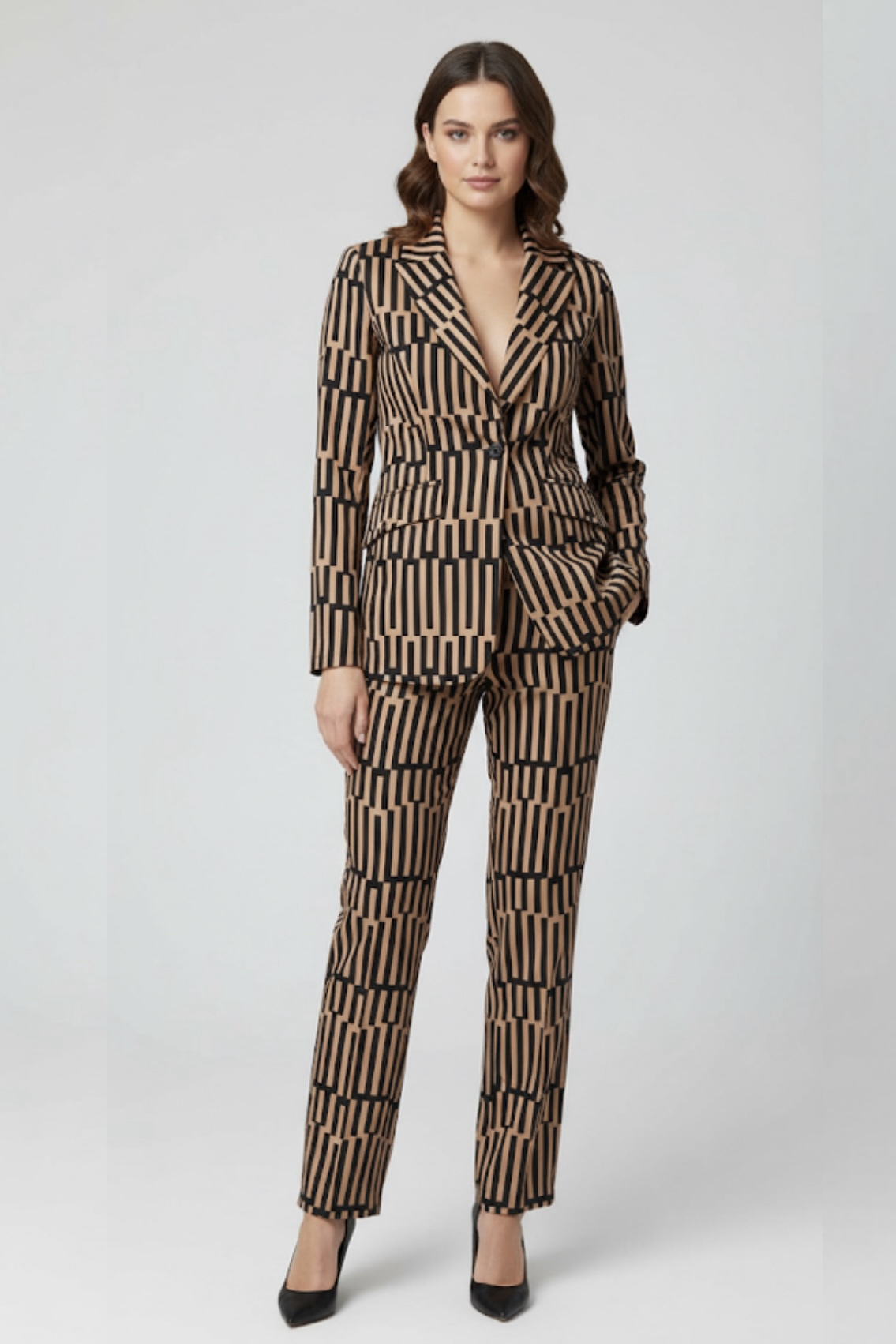 Σακάκι blazer εμπριμέ με κουμπί και ψηλόμεσο παντελόνι με δέσιμο και πλαινό φερμουάρ.