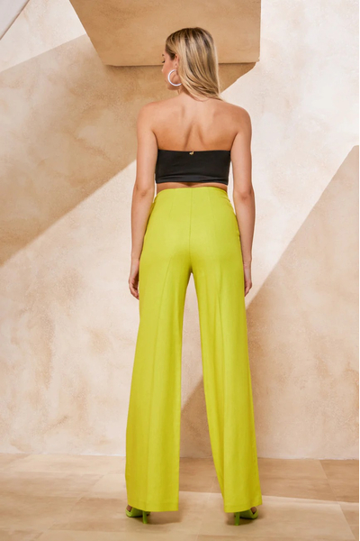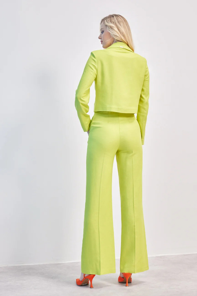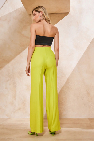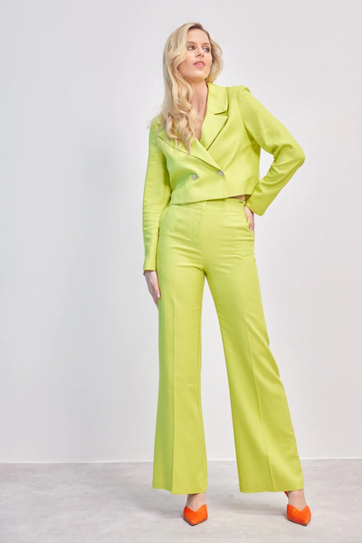 Παντελόνι ψηλόμεσο. Σταθερό ύφασμα, τύπου λινό.