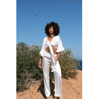 Σετ σατέν παντελόνα με μπλούζα που δένει κρουαζέ ή μπροστά με κόμπο