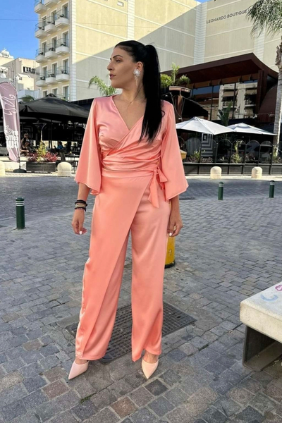 Σατέν σετ μπλούζα κρουαζέ και παντελόνα φάκελος