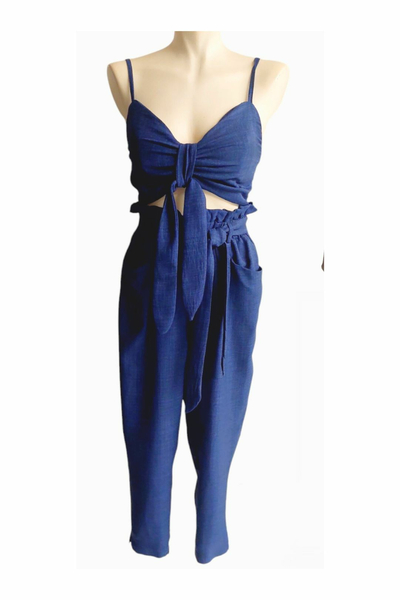 Σετ μπούστο με παντελόνι. Σταθερό ύφασμα τύπου λινό.