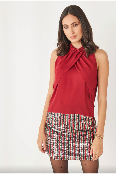 Σχέδιο με διπλό ύφασμα και δαντέλα στο γιακά.